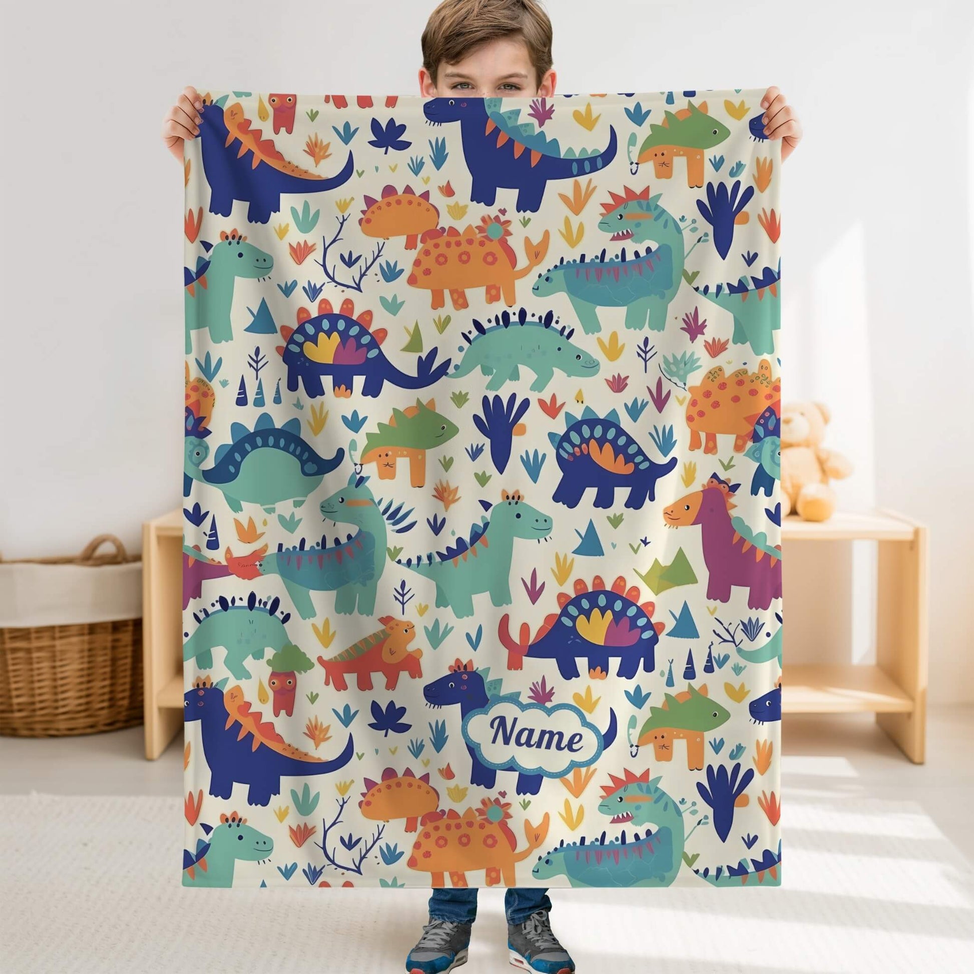 Custom blanket with your kid's name and cute dinosaur pattern, personalized blanket for your baby. This custom blanket is also an idea gift for your friends or colleagues who have small kids.