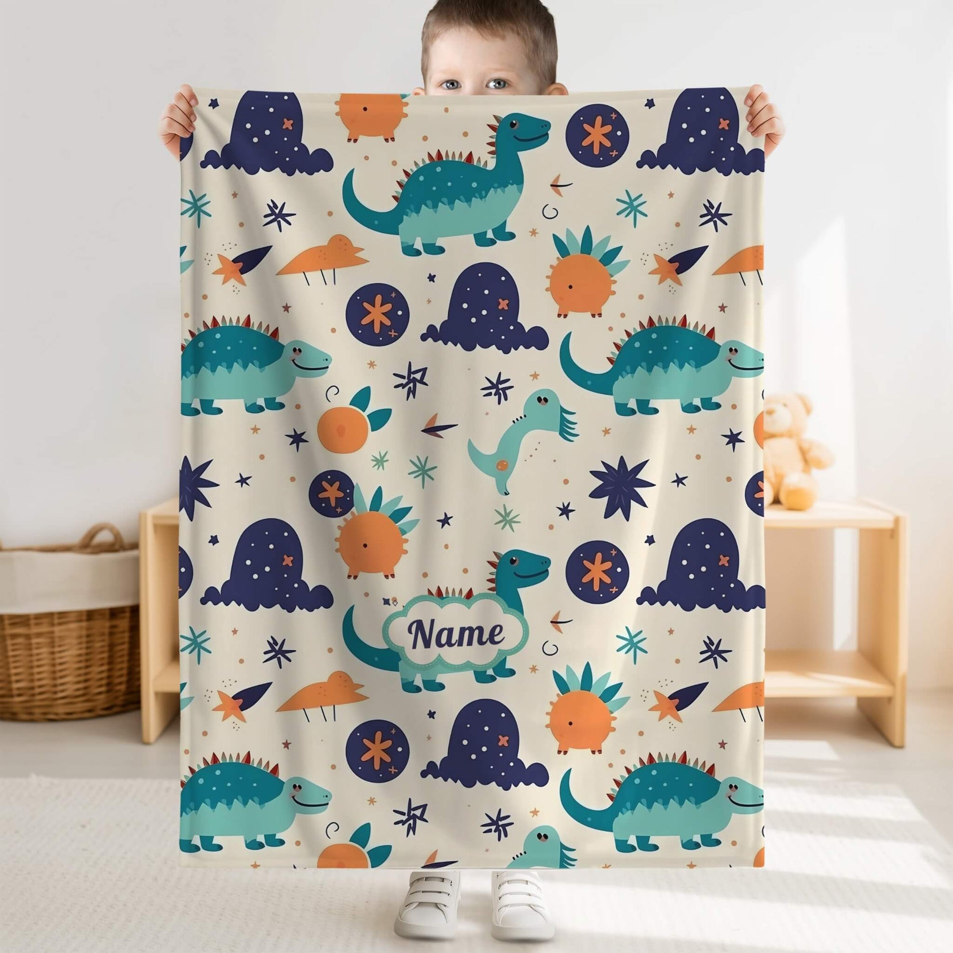 Custom blanket with your kid's name and cute dinosaur pattern, personalized blanket for your baby. This custom blanket is also an idea gift for your friends or colleagues who have small kids.