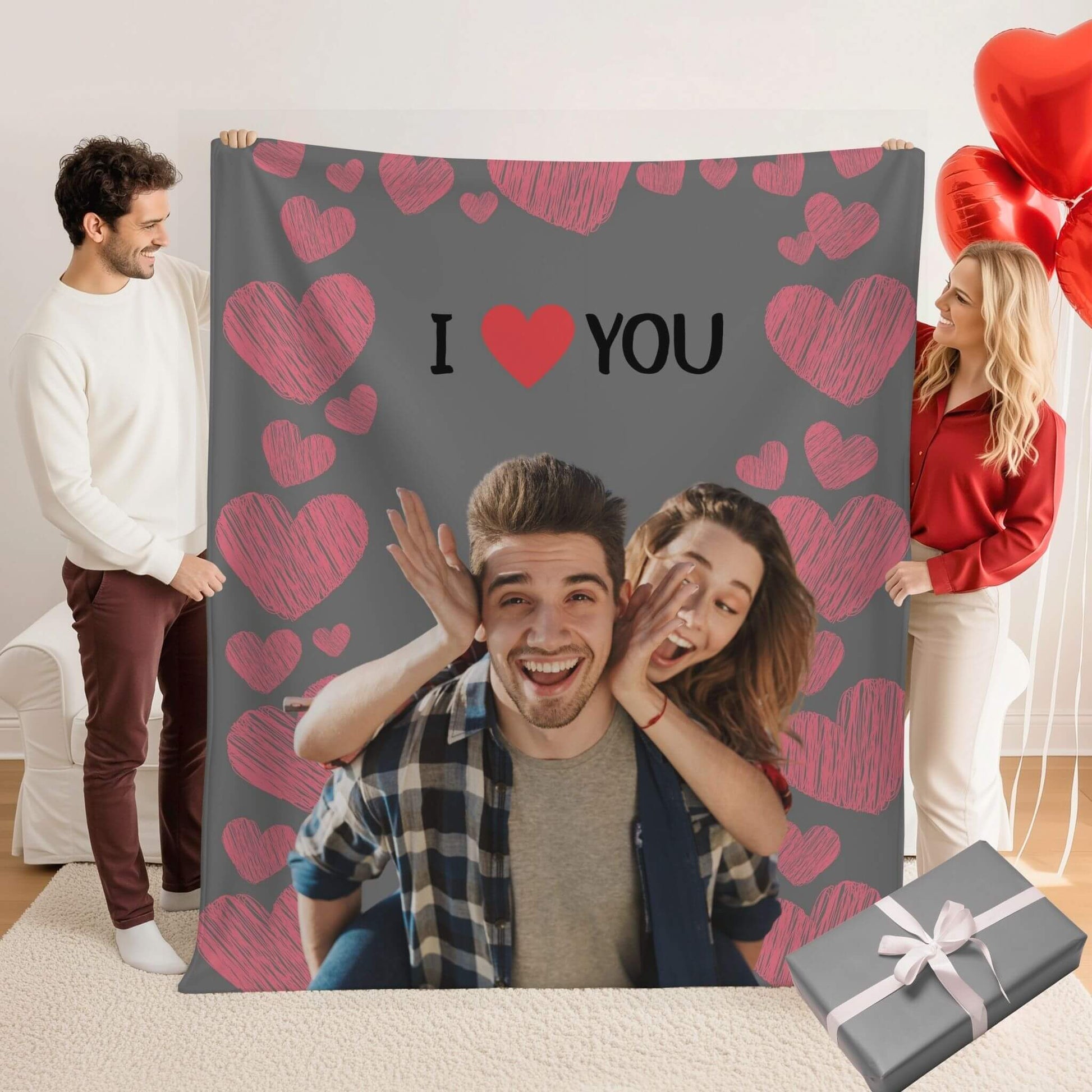 Custom blanket with your photo and our unique design, personalized gift for Valentine's Day, anniversaries, birthday or any special moment. Uploading your own photo and tailor it for your boyfriend, girlfriend, wife, husband, partner, or lover, this blanket not only delivers a sweet message but also adding a personal and intimate touch.