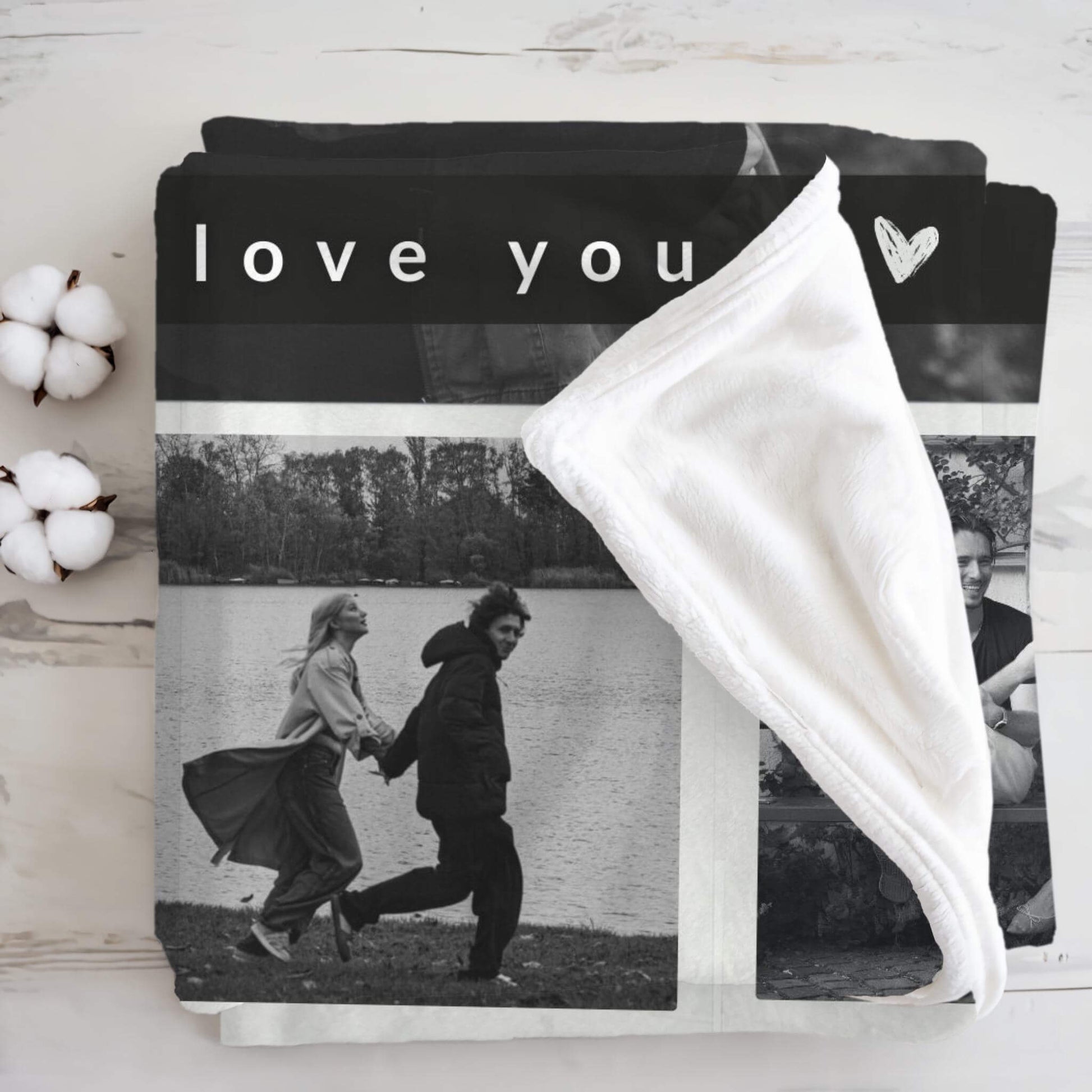 Custom blanket with your photo and our unique design, personalized gift for Valentine's Day, anniversaries, birthday or any special moment. Uploading your own photo and tailor it for your boyfriend, girlfriend, wife, husband, partner, or lover, this blanket not only delivers a sweet message but also adding a personal and intimate touch.